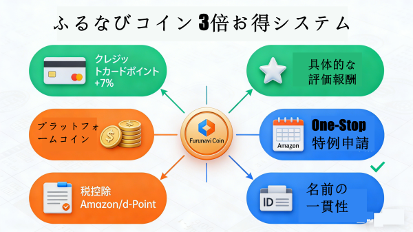 - 副次効果:クレジットカードポイント+プラットフォームコイン+税額控除=トリプルベネフィット。