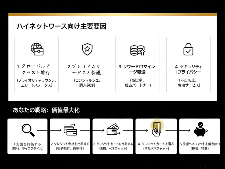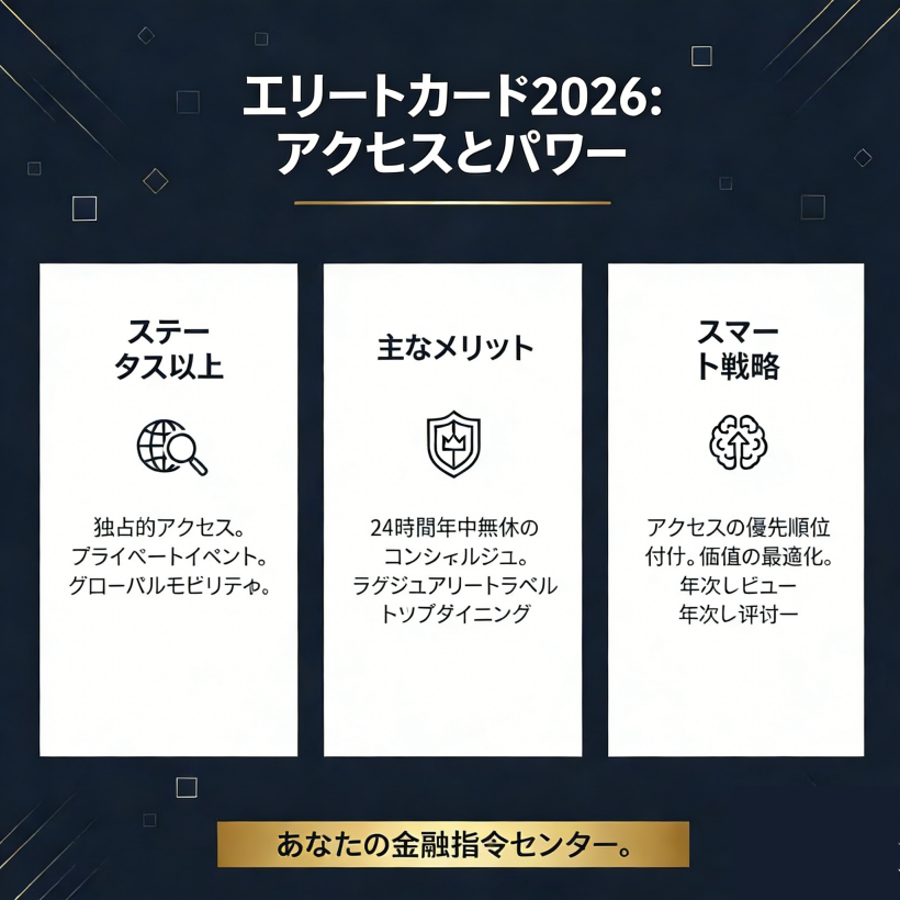 2026年には、最高のクレジットカードは存在しません。資産を守るための最適な「鍵」があるだけです。空港を頻繁に行き来し、ビジネスや社交の効率性を重視する管理職の方にとって、アメリカン・エキスプレスのグローバルネットワークは最適な選択肢です。日々の生活の中で合理的な支出を通してリターンを最大化したいとお考えなら、三井住友のプラチナ・プリファード・シリーズは優れたコストパフォーマンスを提供します。プレミアムクレジットカードは、ステータスシンボルとしての基礎をはるかに超え、グローバルなリソースへのアクセス、個人のプライバシーの保護、そして時間資産の最適化のための洗練された金融ツールへと進化を遂げています。